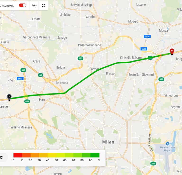 Monitor a route in real time to identify events in the road network.